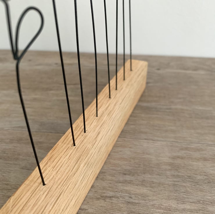A wood slice is included to arrange the flowers. The drilled holes are only slightly wider than the wire, but not much to ensure a super snug and secure fit.