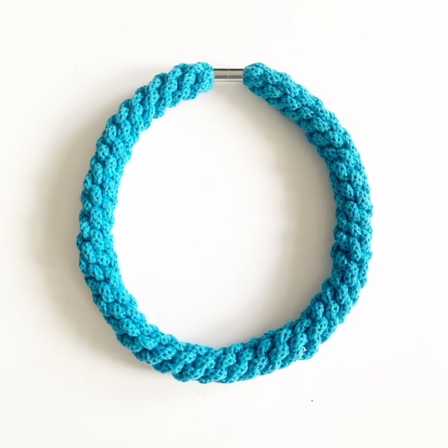 A beautiful handmade bracelet. It is made using soft cotton rope. It’s around 60cm in length. Can be made longer. It has magnetic lockable clasps to give a beautiful finish. This necklace is also hand washable.
