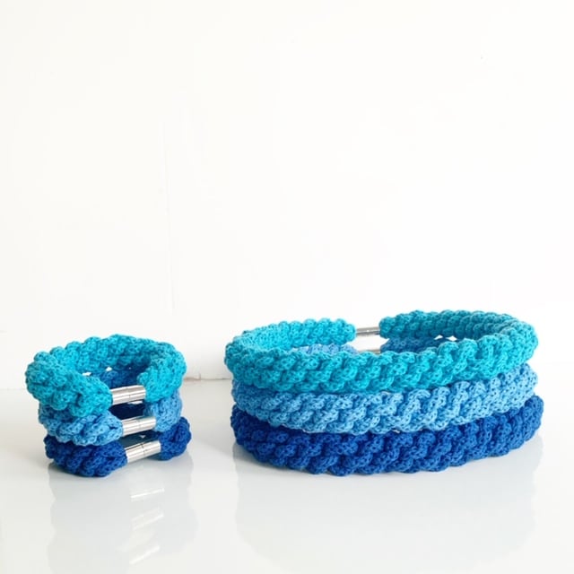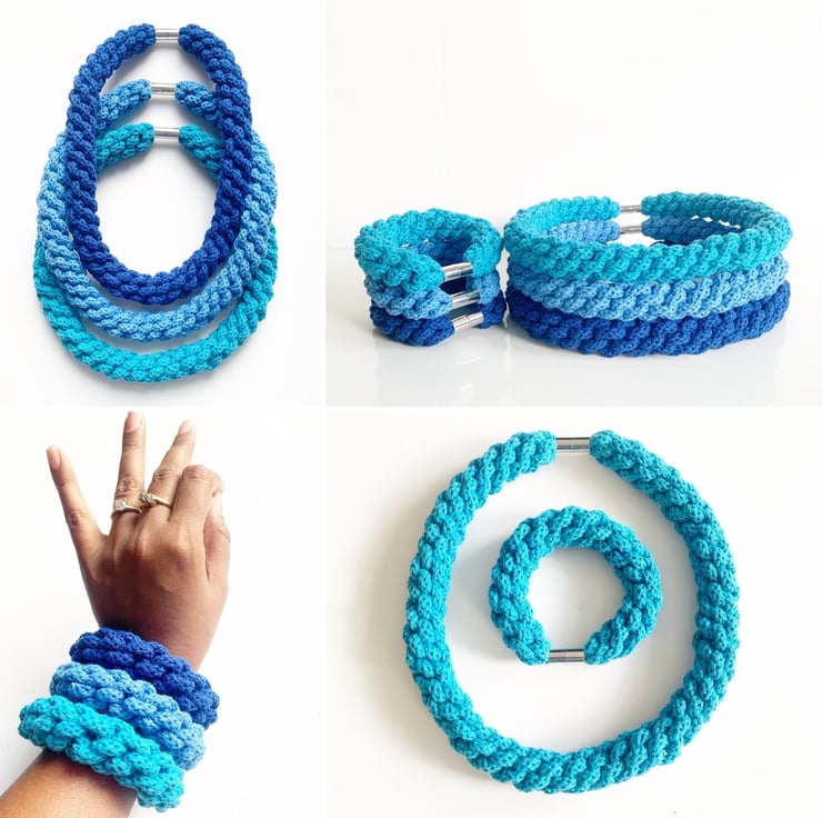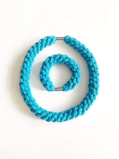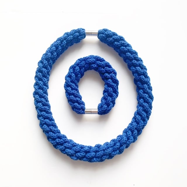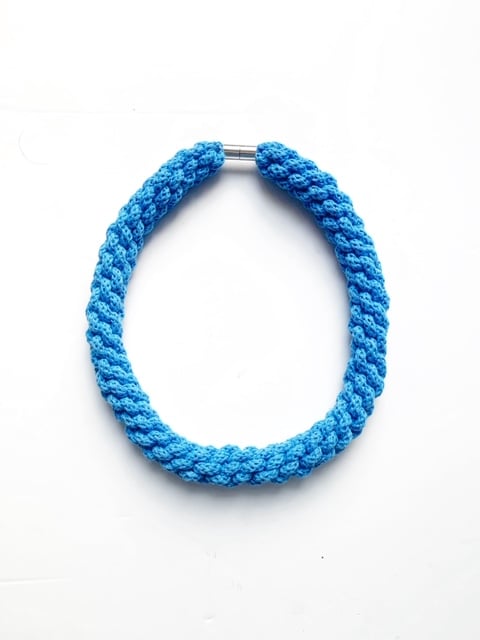 A beautiful handmade bracelet. It is made using soft cotton rope. It’s around 60cm in length. Can be made longer. It has magnetic lockable clasps to give a beautiful finish. This necklace is also hand washable.