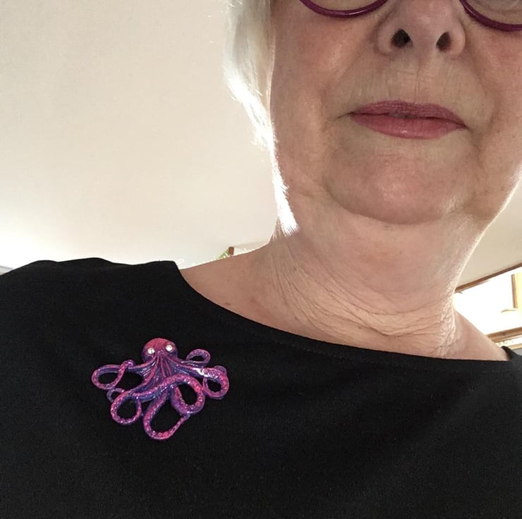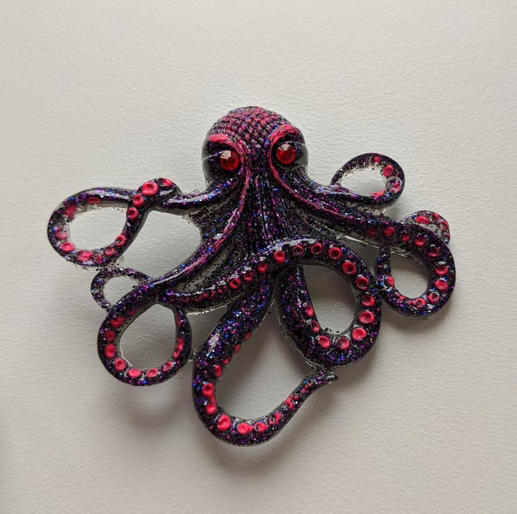 I cast him from resin and painted him in acrylics, purple with pink accents, the detail on his suckers is just lovely!