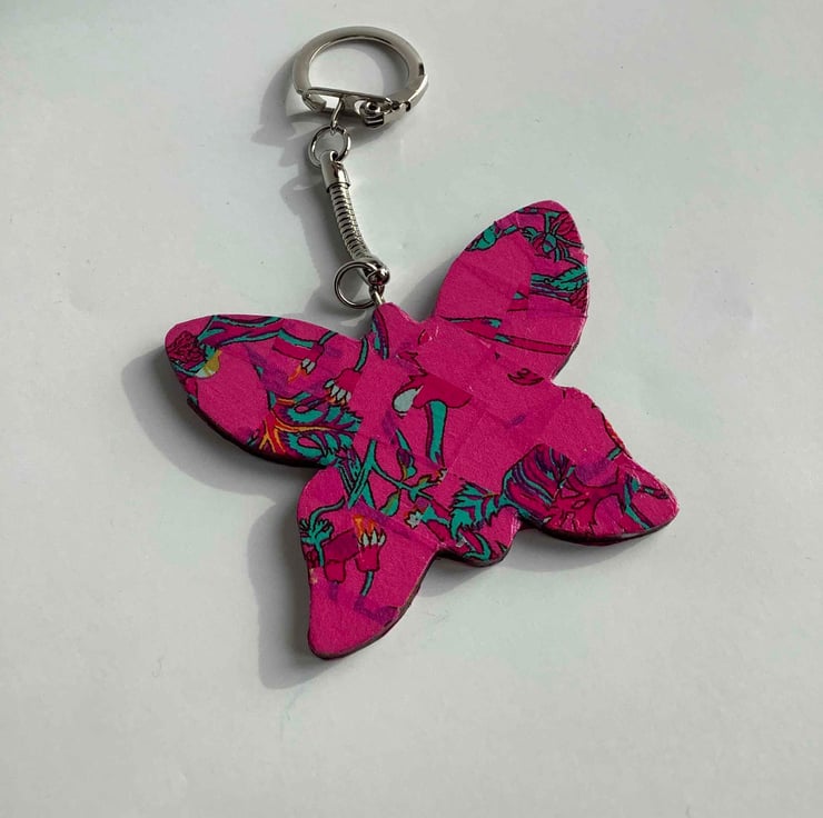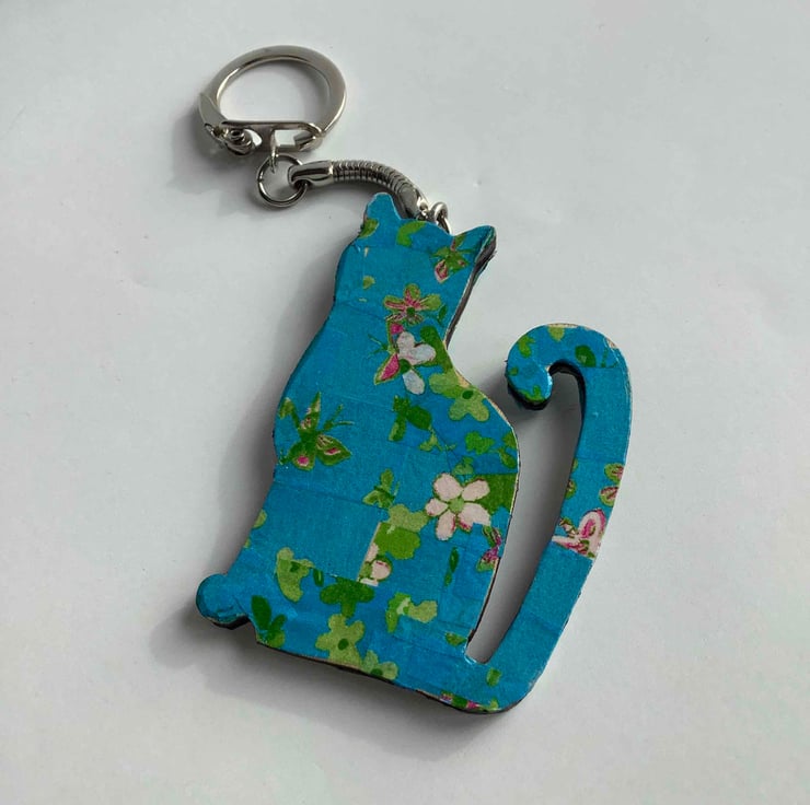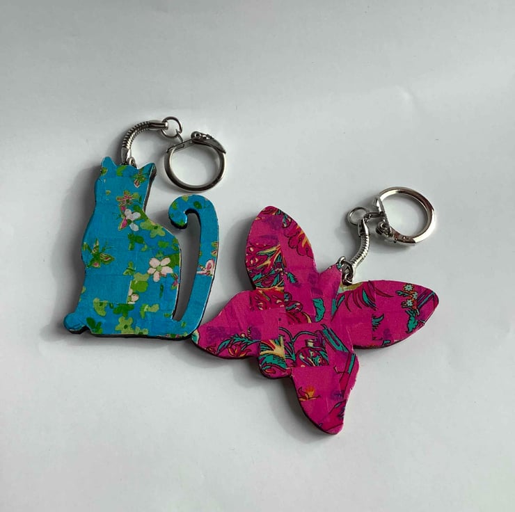On sale are 2 wooden Decopatched key rings. These have been Decopatched with pretty papers.