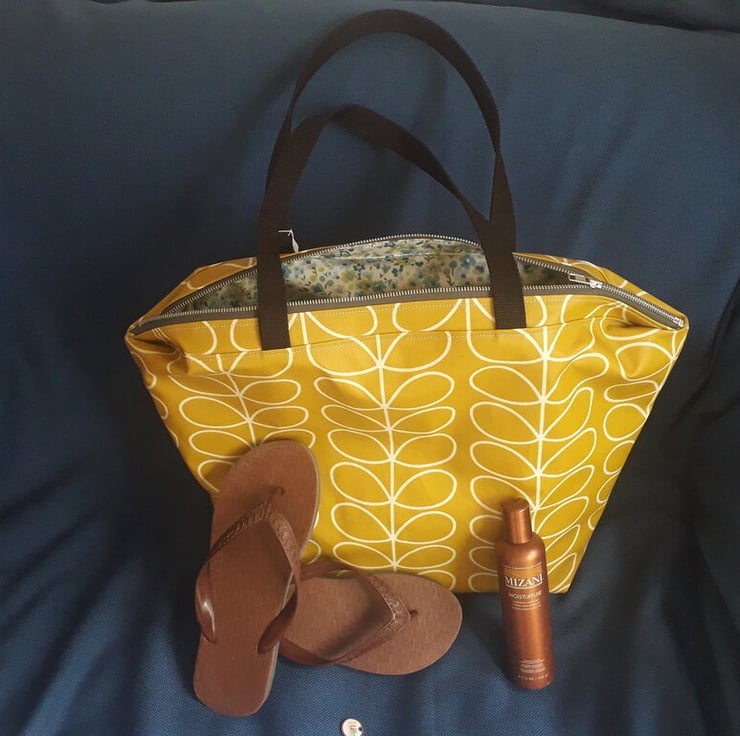 Big multipurpose waterproof shoulder bag, perfect for carrying all that you need for that day out. This Oilcloth PVC bag closes with a zipper.