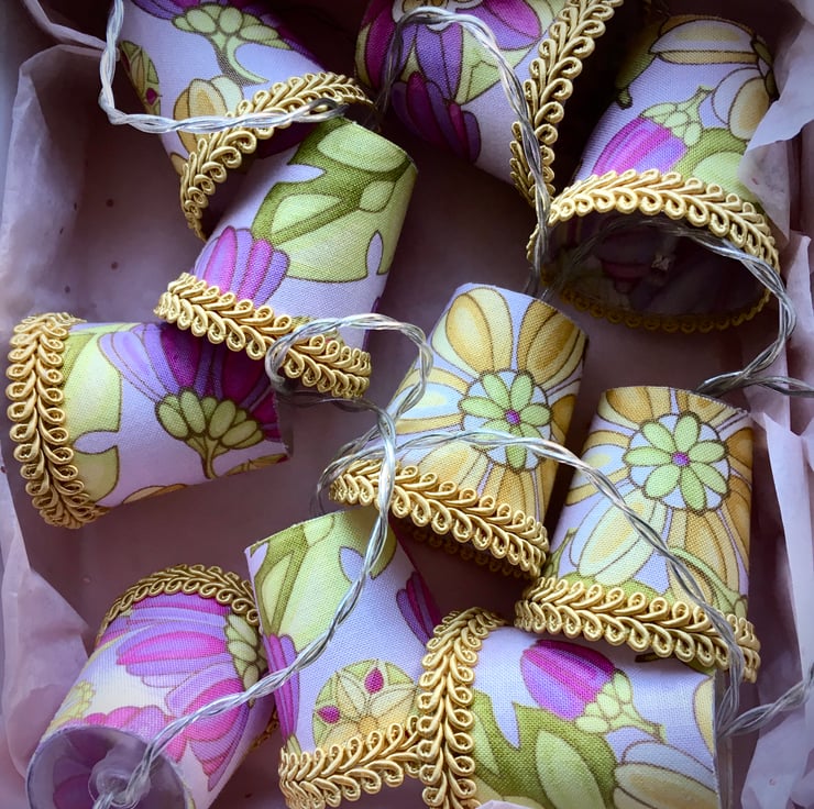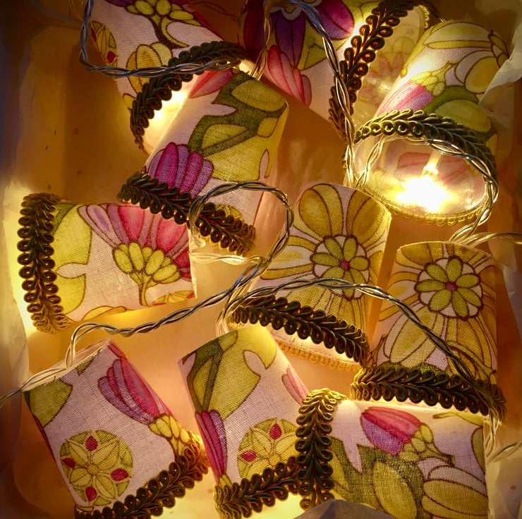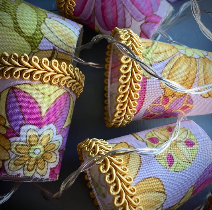 I also do custom lights to order, and can even use your own special fabric, so please contact me if you would like a particular colour combination to fit with your decor, or have a specific fabric in mind. Just remember that these are mini lampshades, so the prints I use have to be mini too!