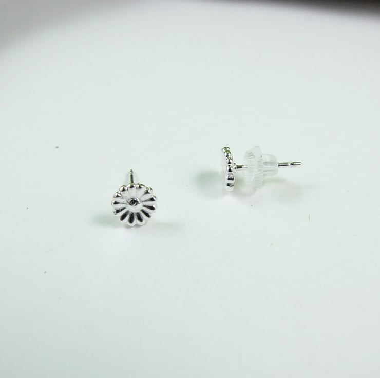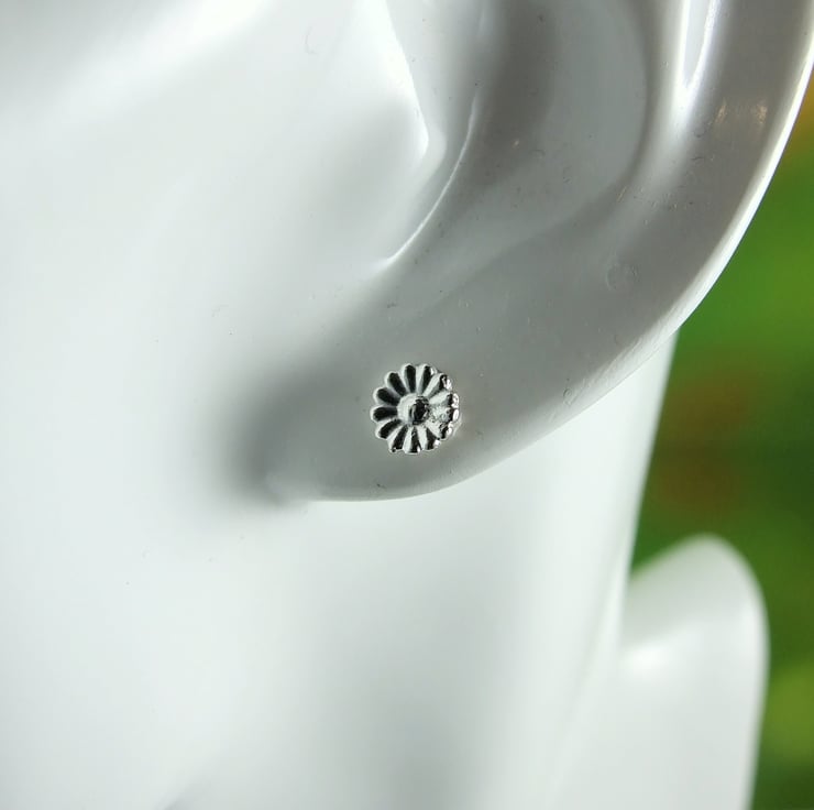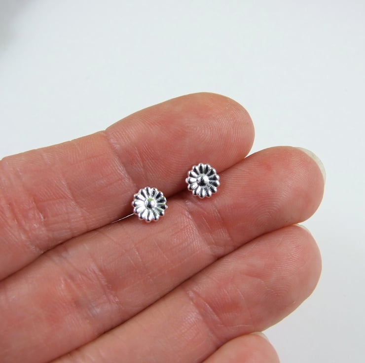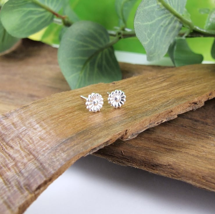 Sterling Silver Daisy Studs. Recycled hand molded 5mm flower earrings.