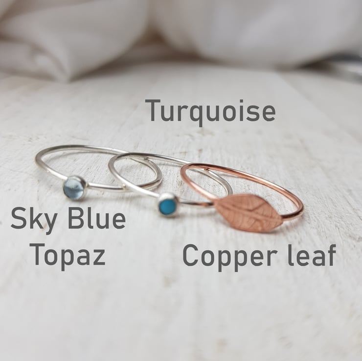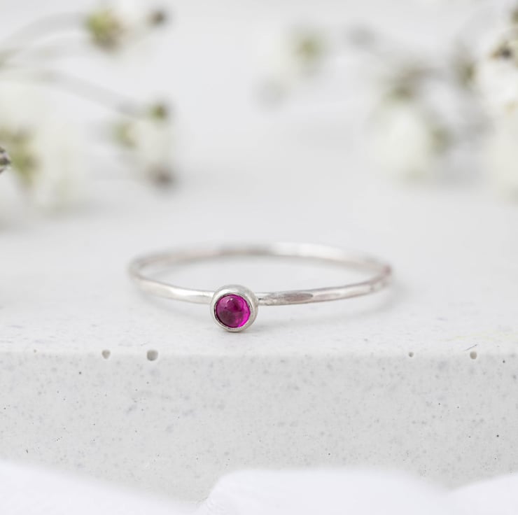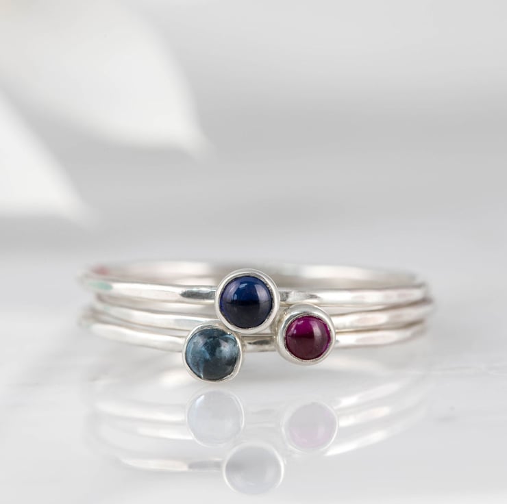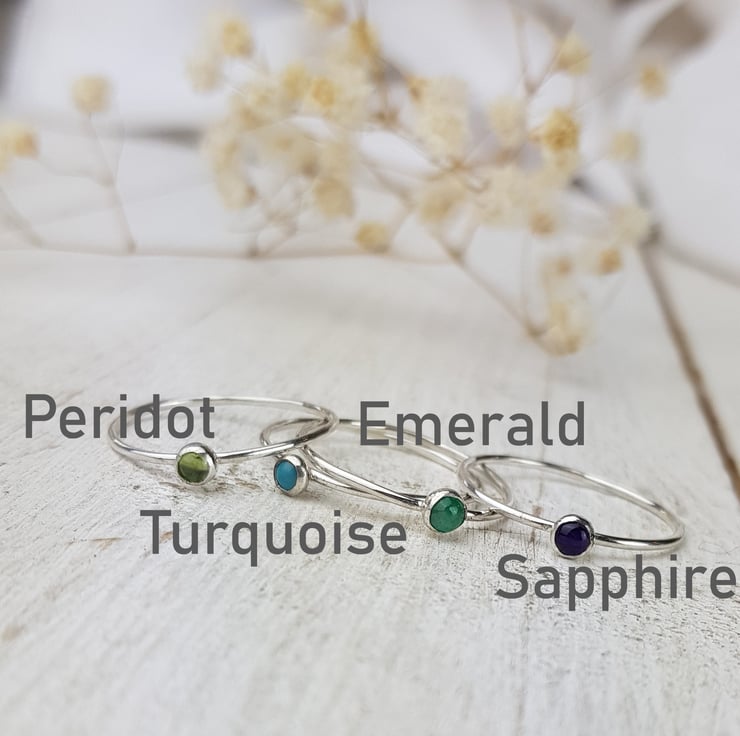 All of these silver birthstone stacking rings are made to your required size and with a slim 1mm wide band and round 3mm cabochon stones. If you would like your stones to be a different shape or size, feel free to get in touch or have a look at my main birthstone stacking rings.