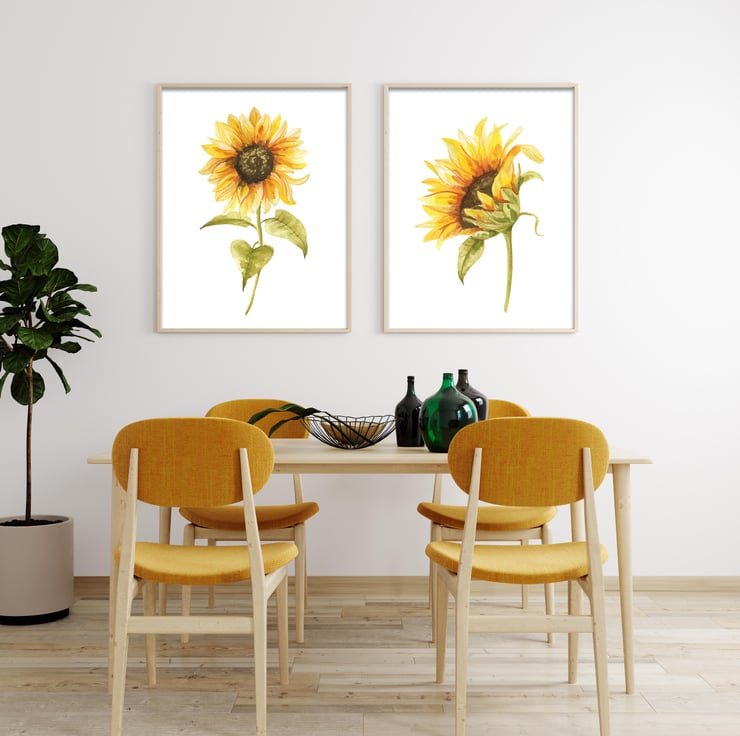 Sunflowers wall prints, Sunflowers wall decor, living room prints, floral art