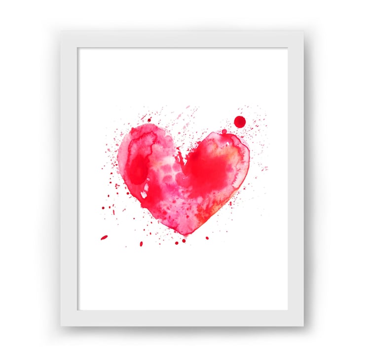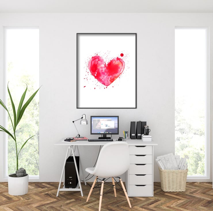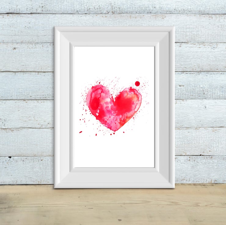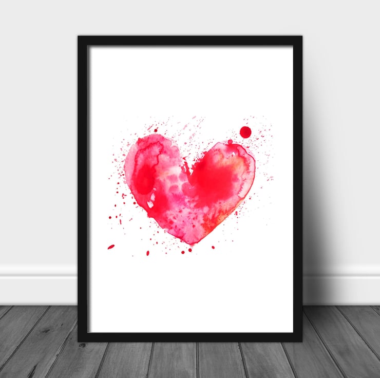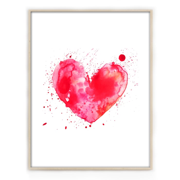 Pink heart print, minimalistic wall decor, heart wall art, watercolour heart