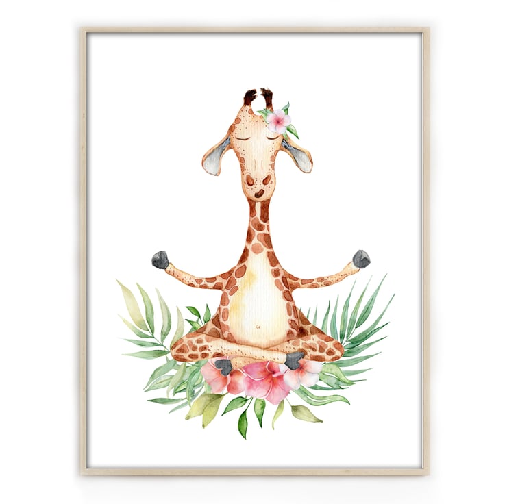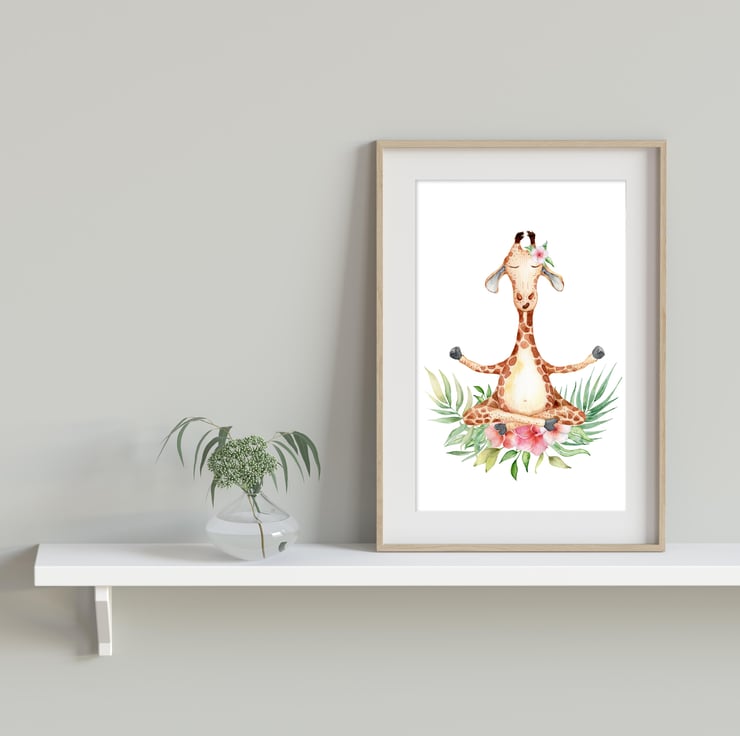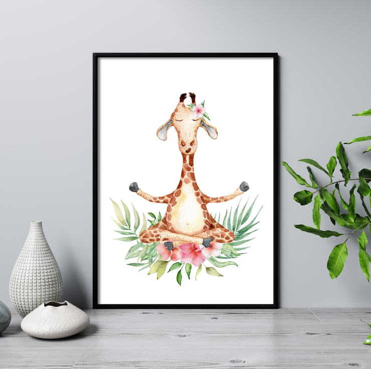 Giraffe in yoga pose print, funny giraffe wall decor, gift for yoga lover