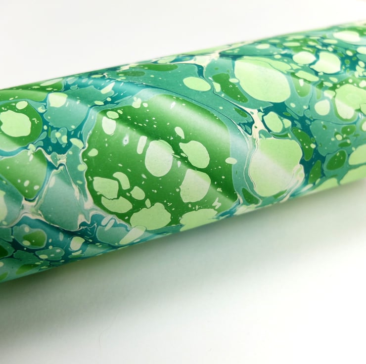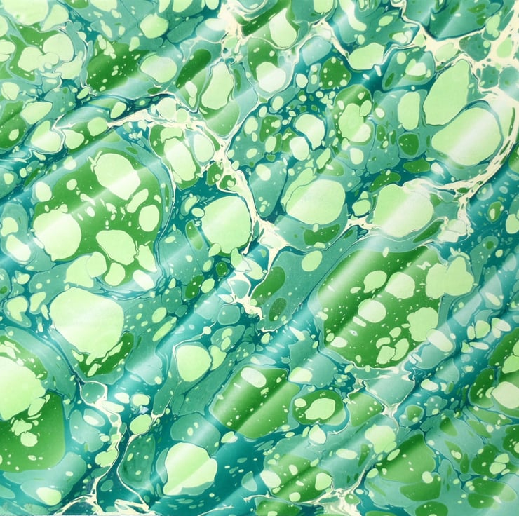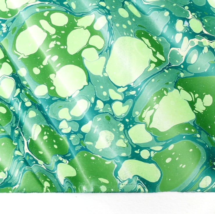 Marbled onto 140gsm FSC white base paper from recycled coffee cups(please see my about section for more details on the papers). The sheet is A4 approx 208mm x 298mm, short grain.