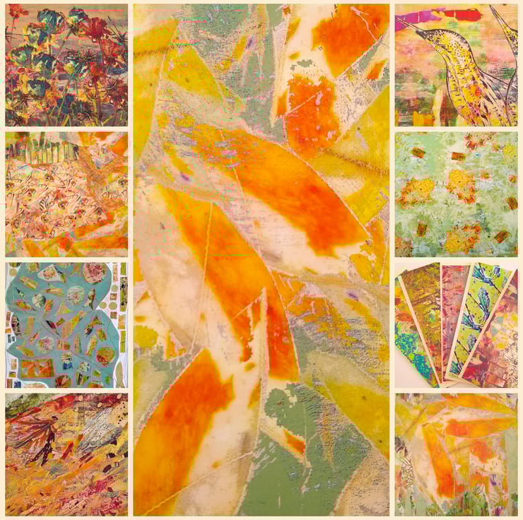 I wanted to capture the feeling of the river, foaming water, teeming with colourful fish. This vibrant design was created by digitally manipulating my original abstracted heat transfer into a seamless pattern repeat.