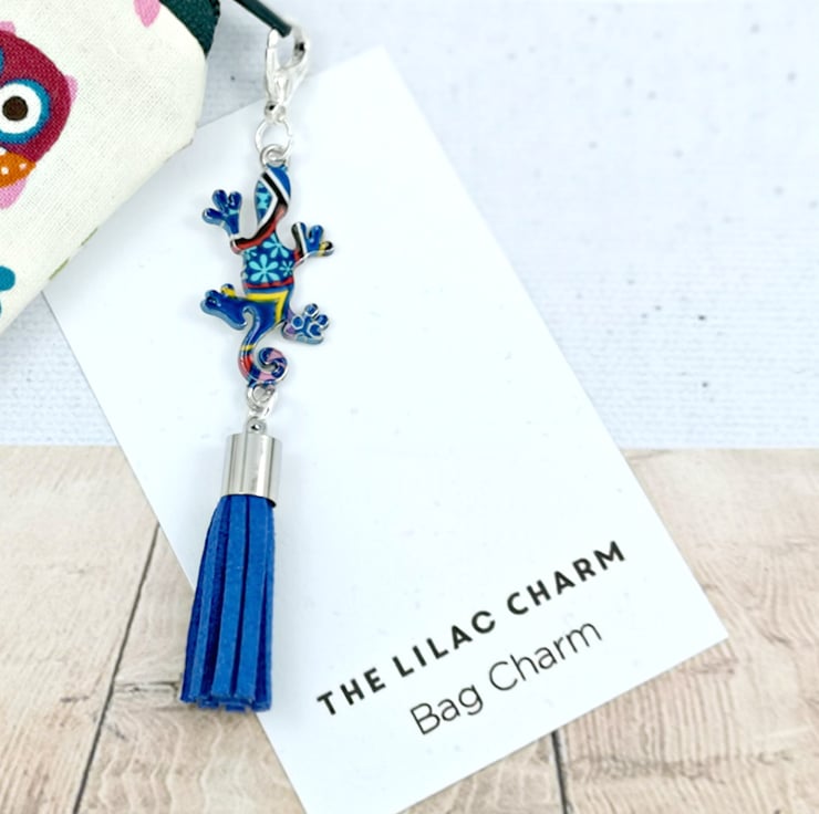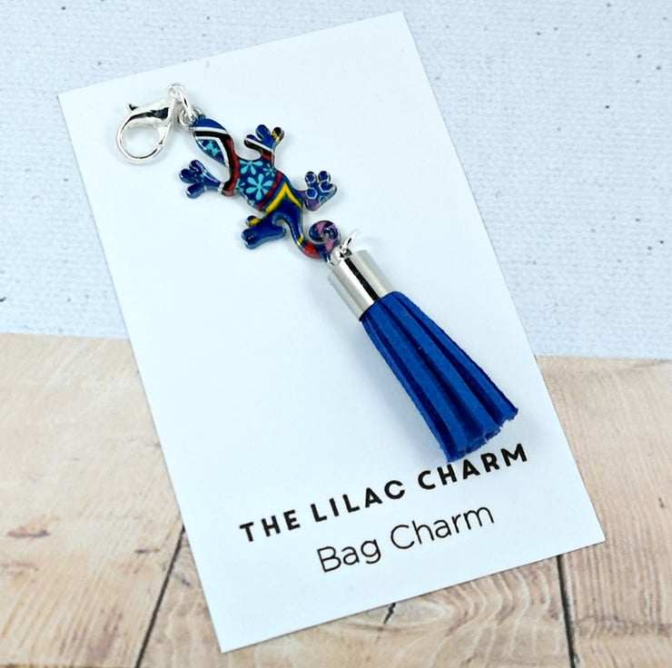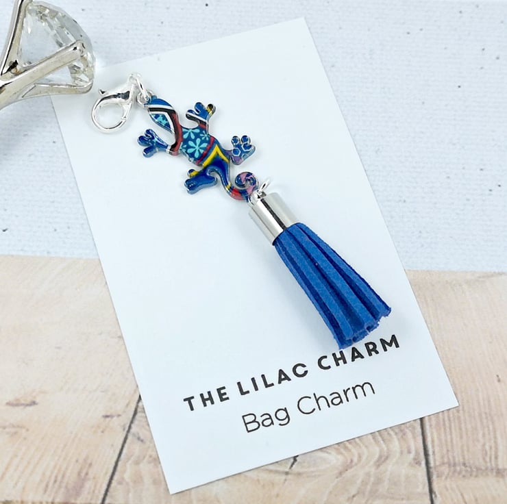 Pretty Enamel Lizard Tassel Bag Charm. The faux suede tassel charm is an ideal accessory to your favourite bag. Perfect to brighten up any handbag or key set.