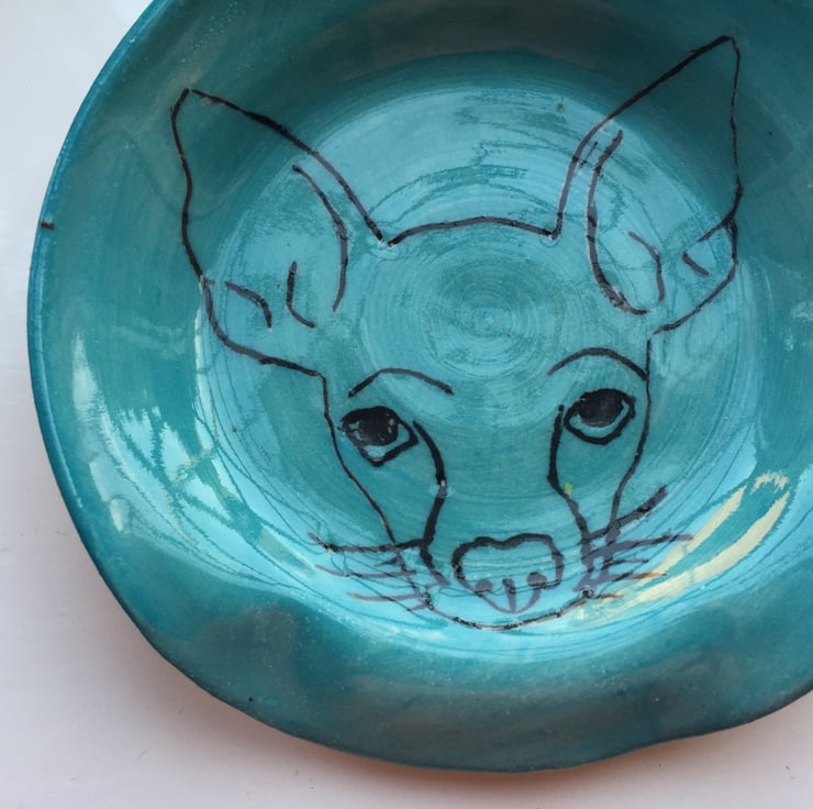 Stoneware spoon rest in a lovely bright turquoise colour. The cute Chihuahua adds interest and a unique addition to any kitchen. Would make a great gift for any Chihuahua owner.