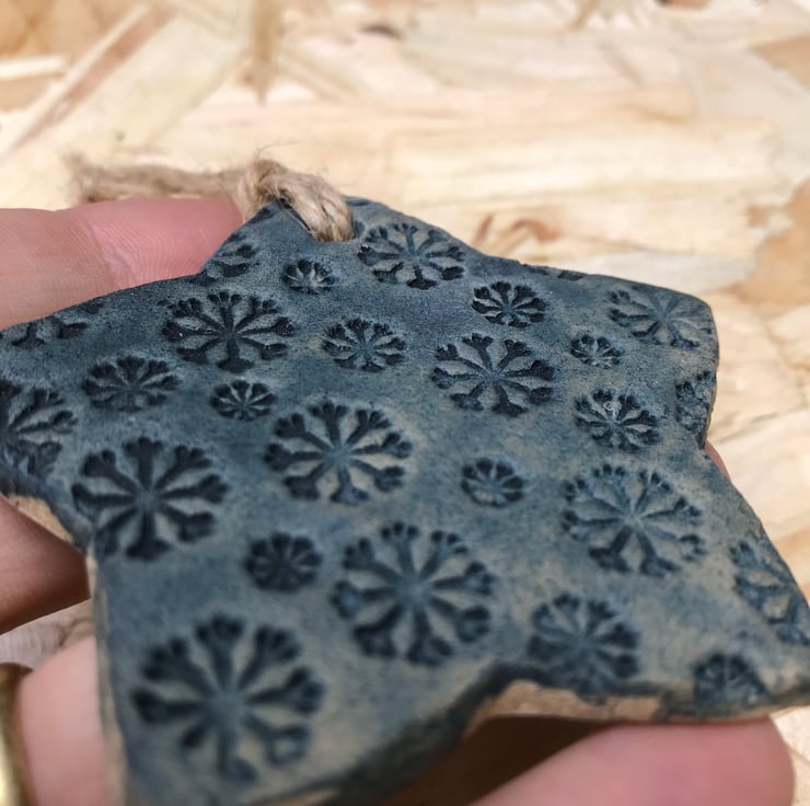 Here’s a little Christmas star specially for your tree. With stamped snowflake decoration and a wash of beautiful blue cobalt oxide, it will definitely make a stylish statement on your tree this year and for years to come.