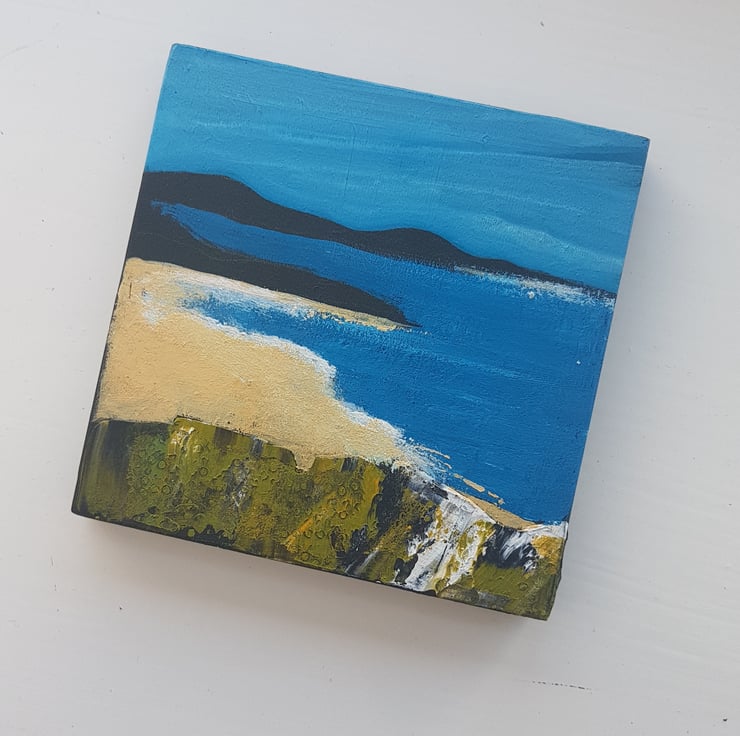 Each original painting is just 10 cm x 10 cm on wood signed at the back and has a hook for hanging on the wall.All my originals are painted with a palette knife inspired by the coastal areas and Islands around the UK