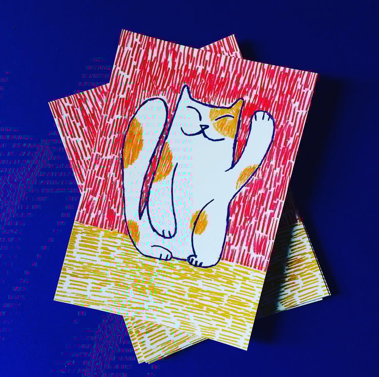 A6 postcard, of a Maneko Neki Cat printed from an original illustration by Jo Brown.