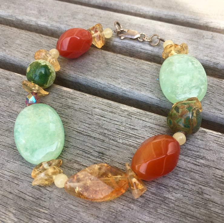 Last one left. From my Limited Edition range. Chunky cuts of grade A gemstones, Length is approx 8 inches. A stunning bracelet with a great mix of colours. Wrapped in tissue paper and in a free gift box tied with ribbon.