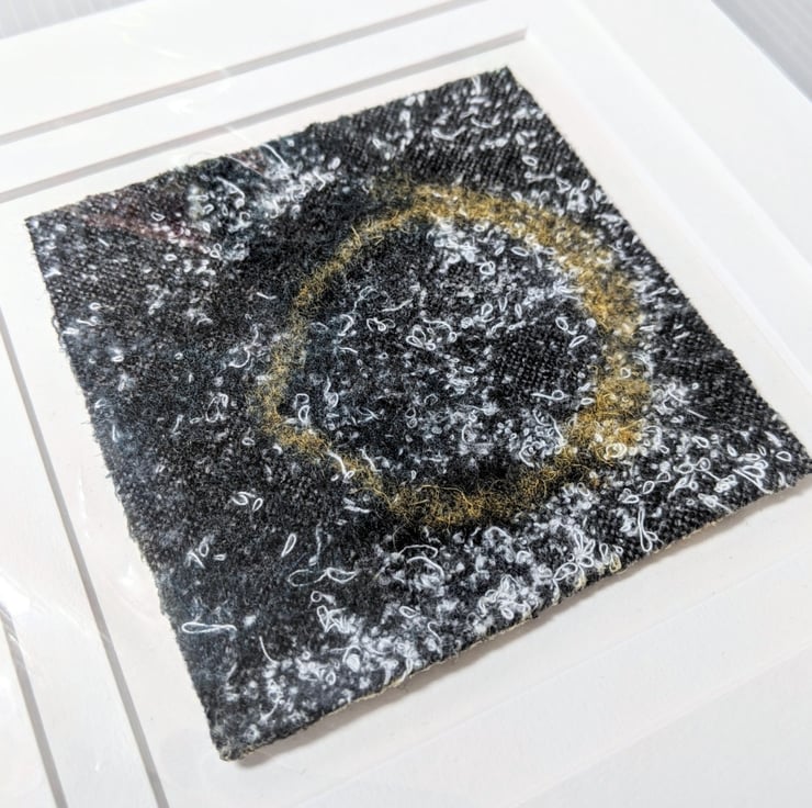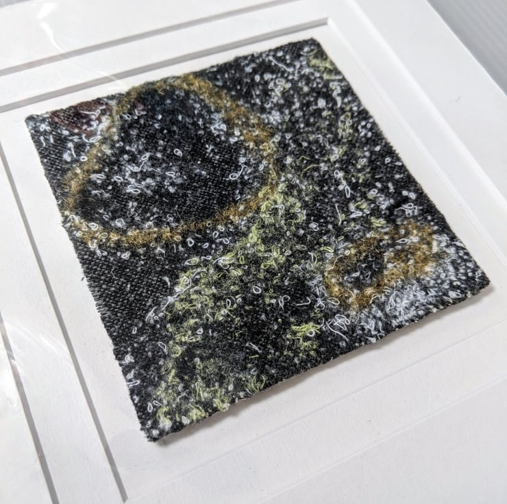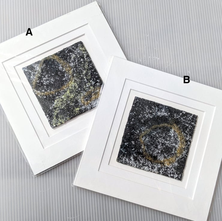 4" x 4" textile art in a 8" x 8" double mount and backing ready for framing