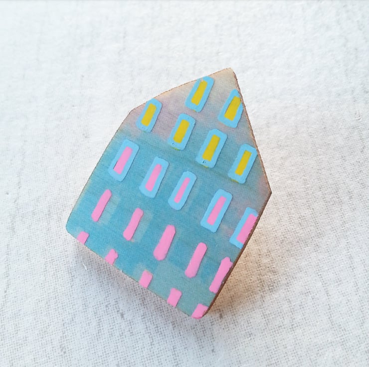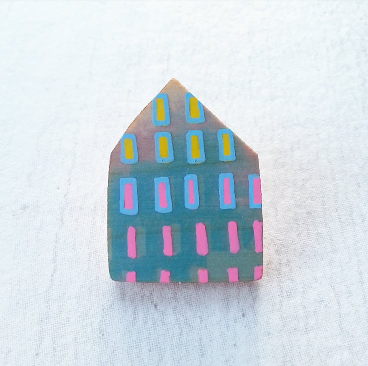 The brooch measures 3.5cm x 2.5cm with a metal lapel pin fastening on the back, perfect for wearing on jackets and jumpers. It would make a great gift for a lover of little houses and original design, and with Christmas on the horizon it would also be ideal as a stocking filler! The brooch comes attached to a pretty backing card ready to give as a gift or even keep as a present to yourself!