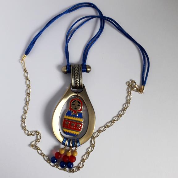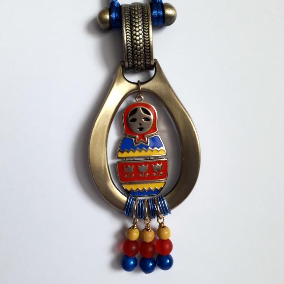 I thought this repurposed Russian doll charm and upcycled buckle fitted perfectly together to make this necklace, I felt the 3 short bead dangles were enough so as not to detract from the charm.