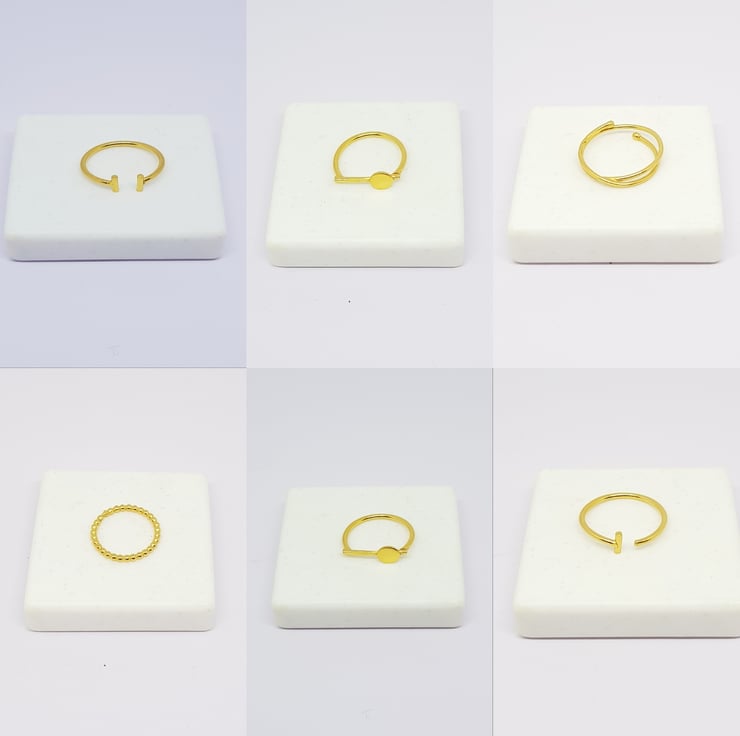 A collection of sterling silver vermeil rings, individually designed and sold separately.