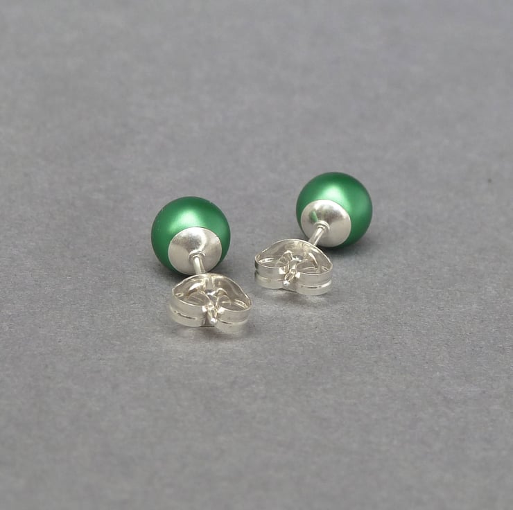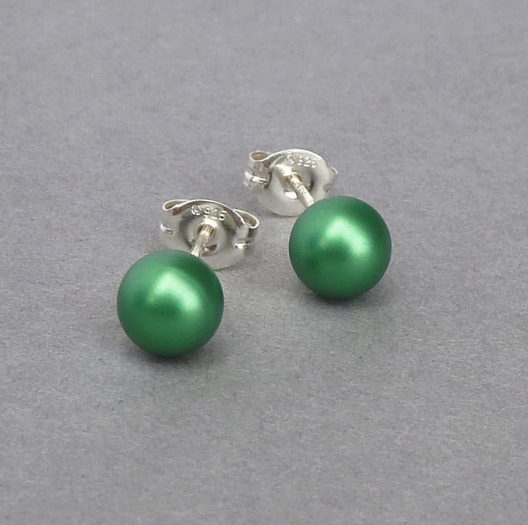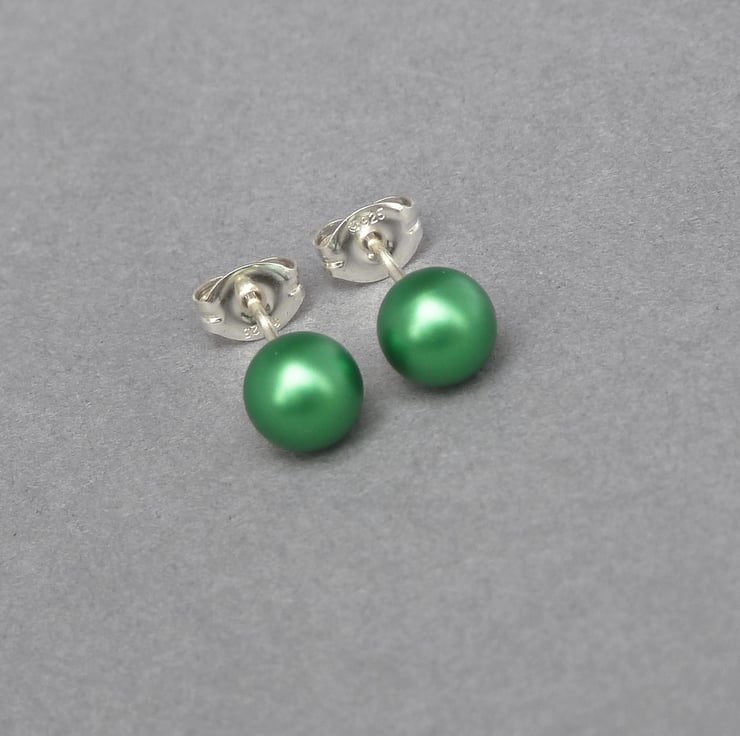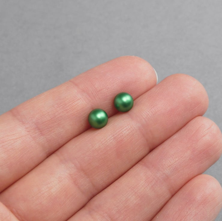These emerald green glass pearl studs have been created using 6mm eden green glass pearls. As they arrive individually gift wrapped, these forest green stud earrings make perfect gifts.