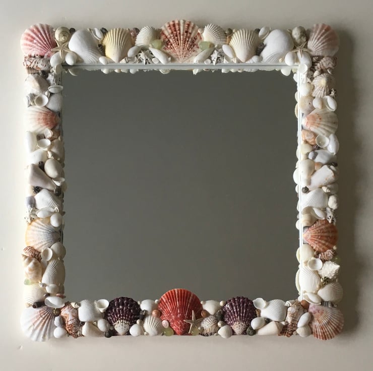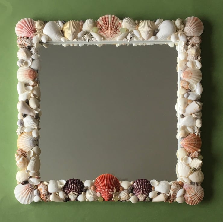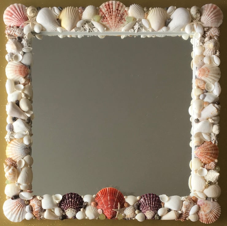 Unique and individually made handcrafted natural seashell mirror
