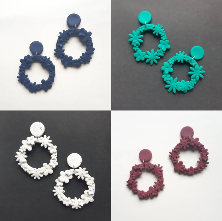 I love the combination of the detailed floral design with the single colour way in these floral garland earrings. Simple and detailed at the same time!