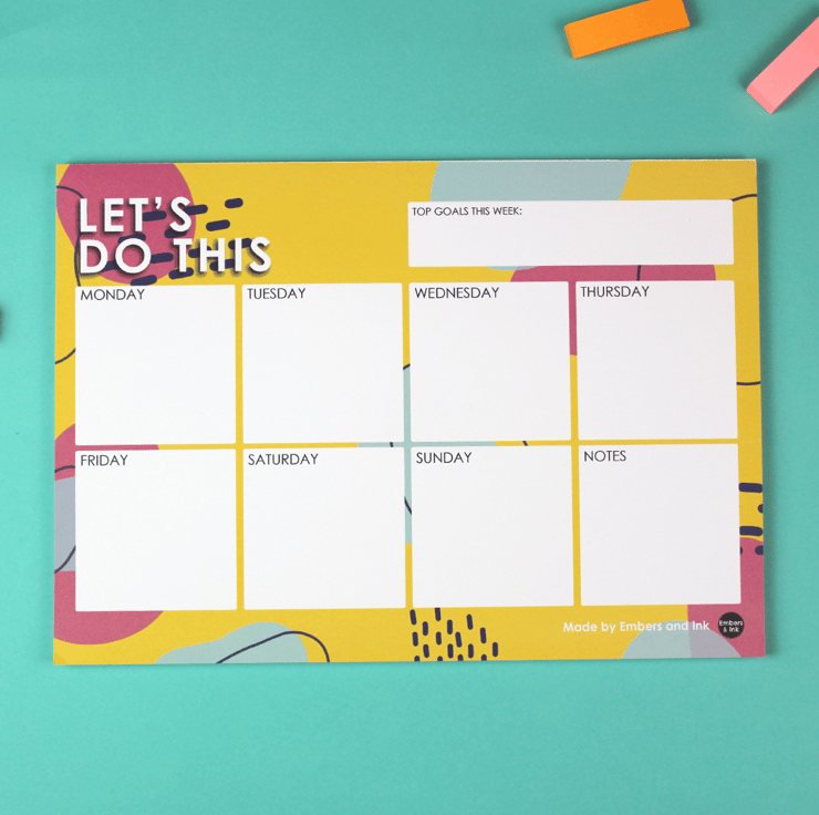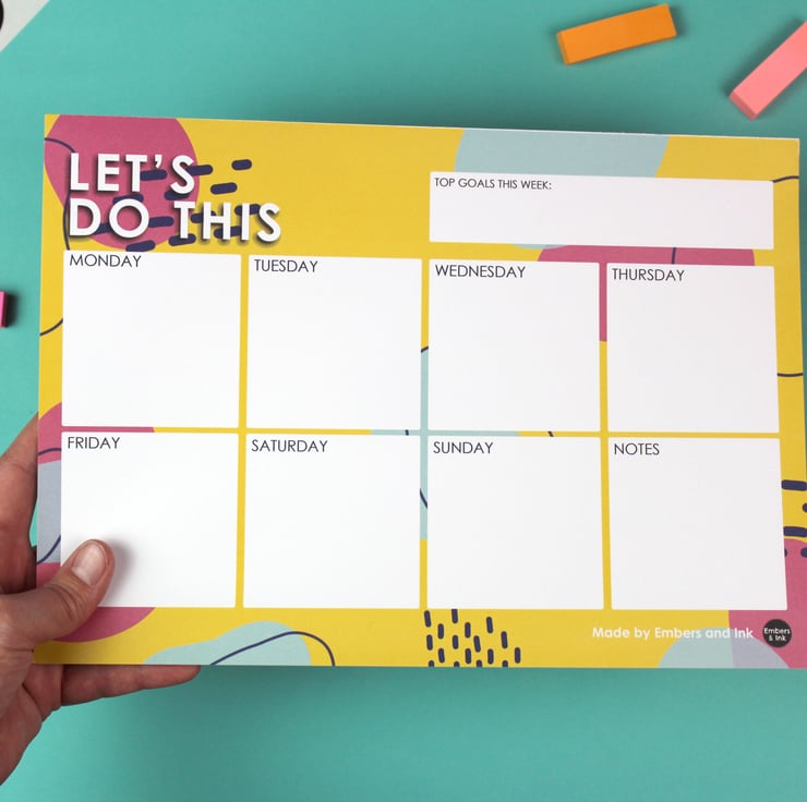This bright and funky 'Let's Do This' notepad is the perfect way to give yourself some motivation to plan your week! This motivational planner comes with 50 easy-tear paper sheets: That's one for every working-week of the year (including your 2 week annual holiday of course)!
