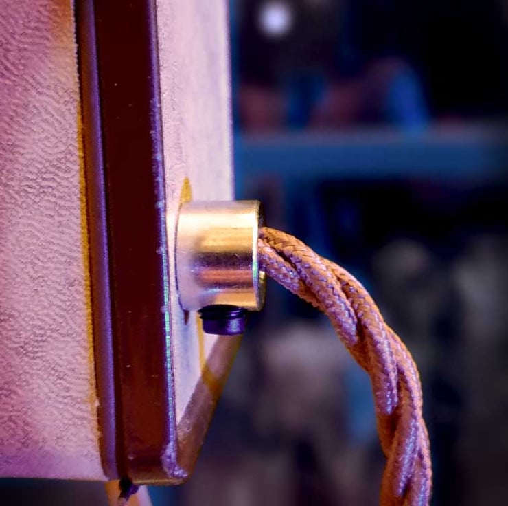 The lamp is also fitted with a vintage style brown braided flex cable with an inline switch, a chrome cord grip, and a 3amp British plug. All fittings are genuine British parts, all hand-wired to a high, professional standard and PAT tested.
