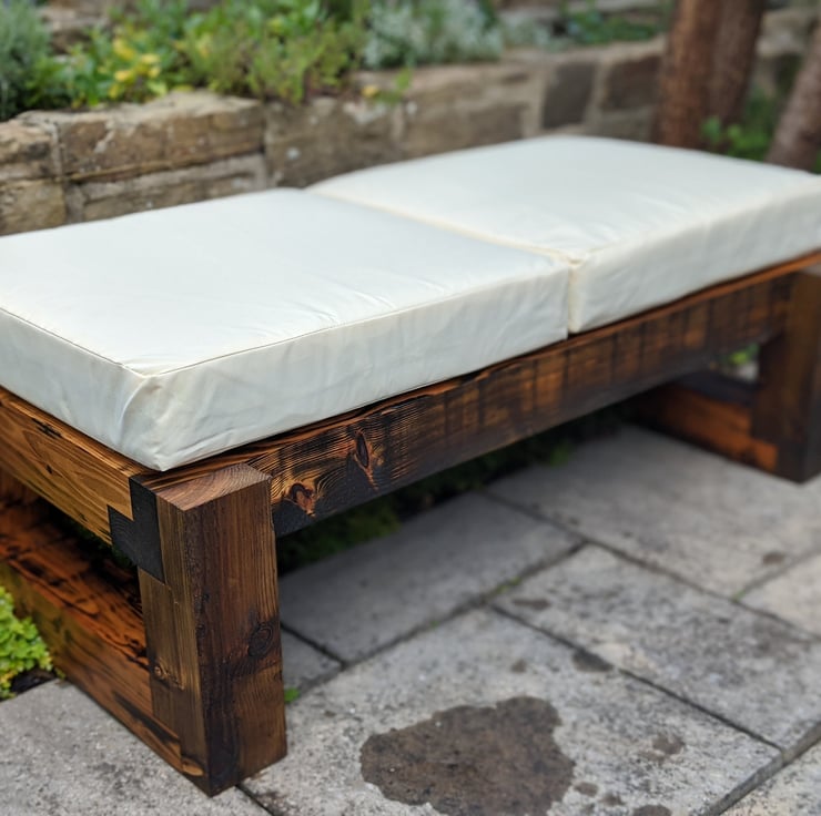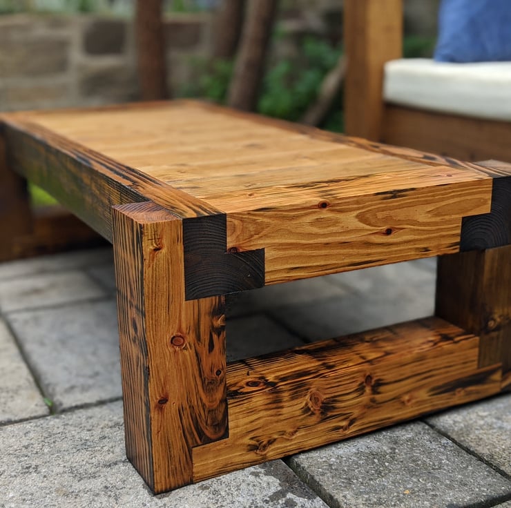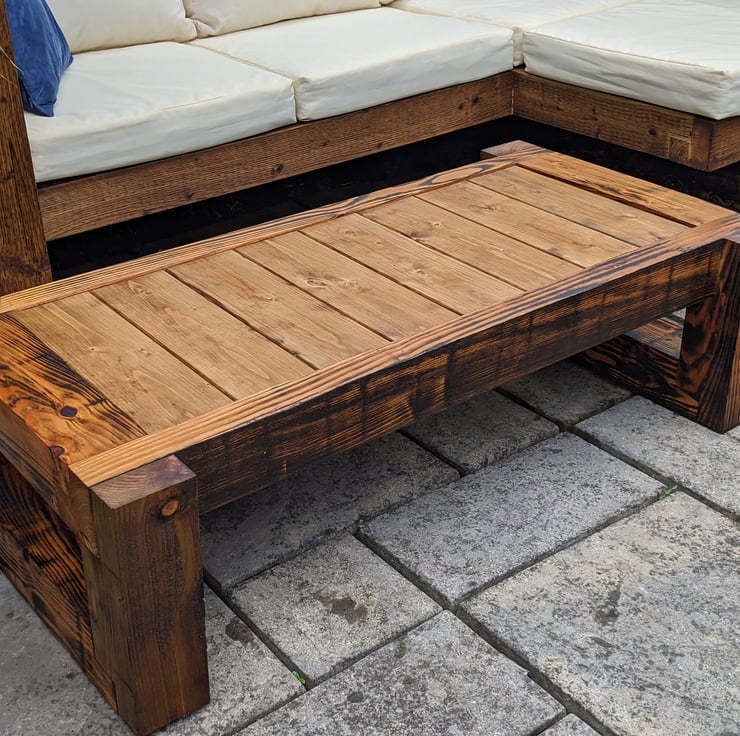 A Handmade and rustic TableBench built from Pressure Treated Timber that is 100mm x 100mm Thick. This is an incredibly Strong and Industrial Design. Designed using a series of rebate joints that uses the strength of the wood itself to provide rigidity. There are absolutely NO visible screwsBolts for a simplistic and Minimalist effect.
