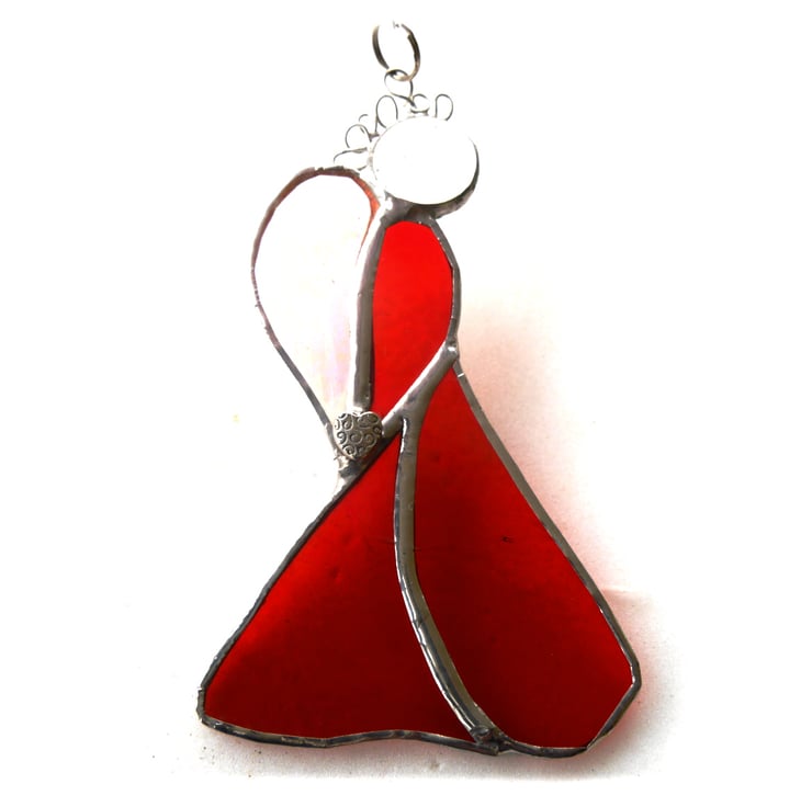 Angel Suncatcher Stained Glass Heart Red Christmas 036