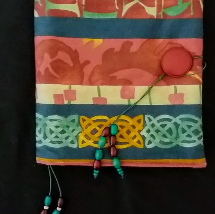 Fabric slip cover for any A5 note book, sketch book, diary, planner, journal or any other book around A5 or slightly bigger. The lmedium size paperbacks and smaller format hard back books also fit well.