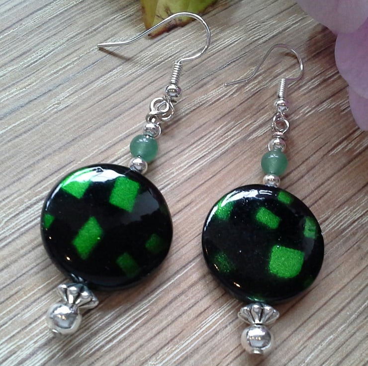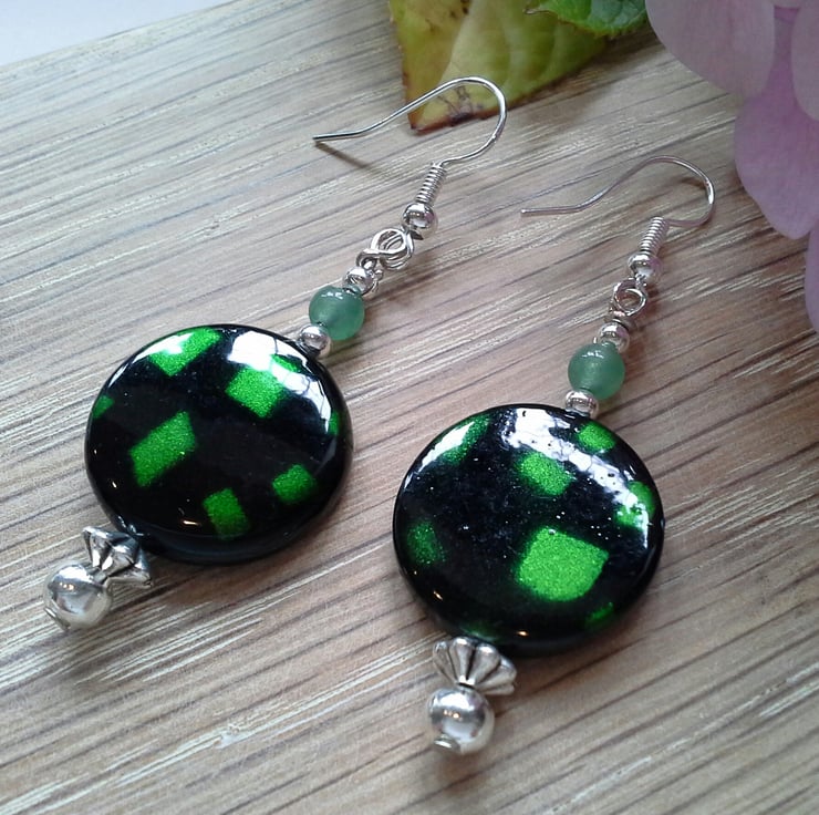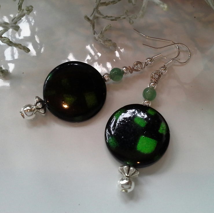Green Aventurine & Mother of Pearl Silver Plate Earrings