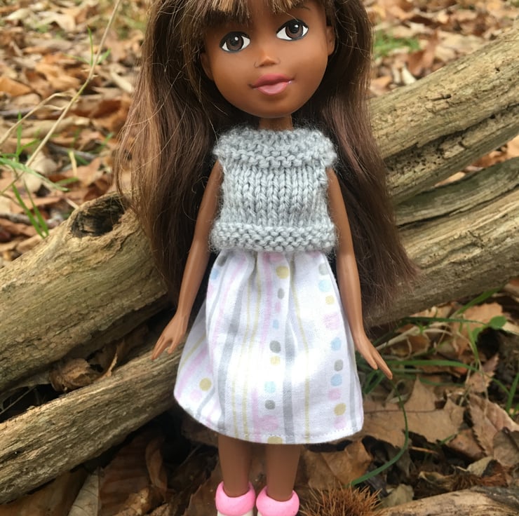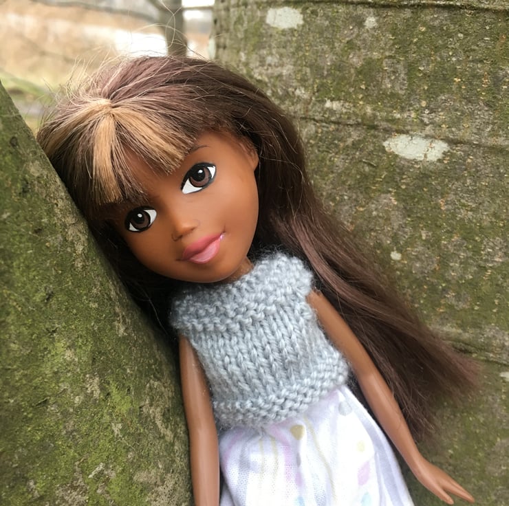 She has enjoyed a thorough spa treatment and had her hair de-tangled, washed and trimmed. Harmony has been cleaned and sterilised. Her face has been repainted by hand in non toxic paints and sealed to give her a fresh, natural look. Harmony has a cute outfit, including a hand knitted top in grey yarn and a matching pastel colours skirt and a warm winter coat in yellow. Her shoes are made from Silicone and pop on and off foot nubs.