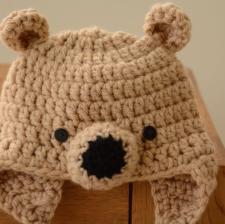 Baby Bear hat suitable for babies of 6 months. Made from acrylic and polyester. Machine washable at 30 degrees. Perfect to keep baby warm on those cold days.