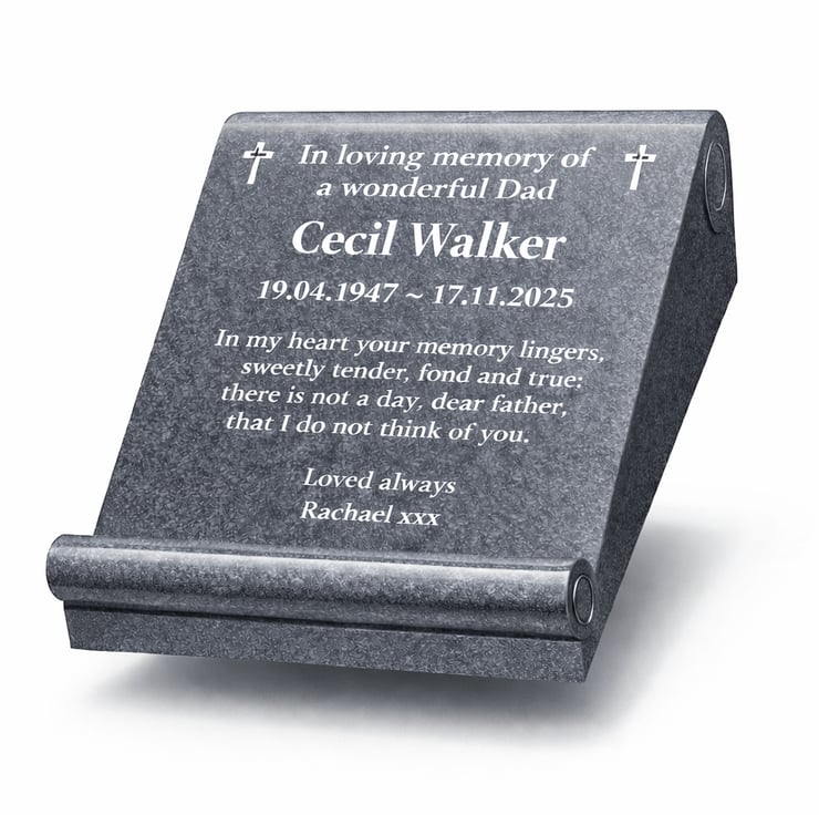 Beautiful Solid Dark Grey Granite Memorial Scroll (Price includes personalisation)