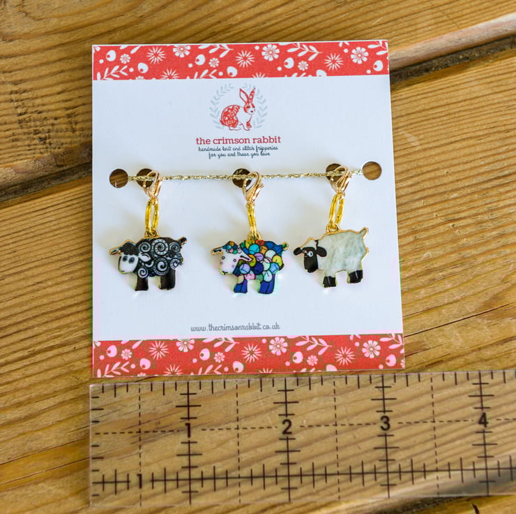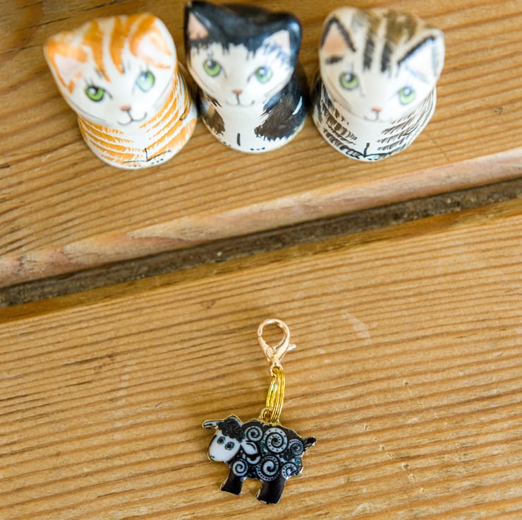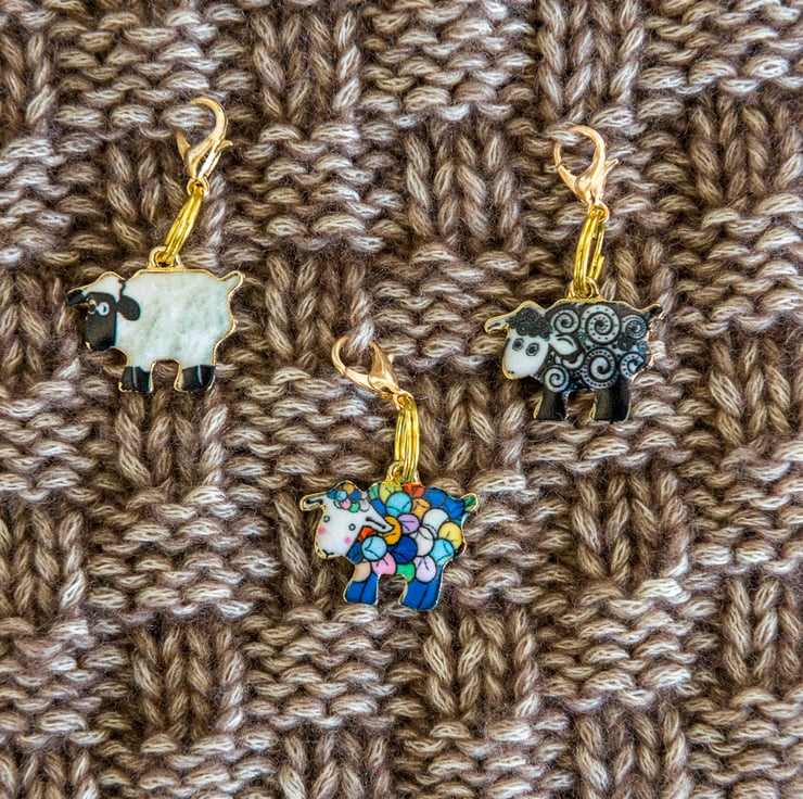 I might be a beginner at collecting my own stitch markers / progress keepers, but I'm learning fast! After my initial find of cute enamel charms a little while ago, my collection has continued to grow! This time, I found a mini herd of 3 little sheep - not sure if Bo Peep lost them... They're also a mixed breed herd as one is white, one is black, and the third is frankly confused and has a rainbow of colours.