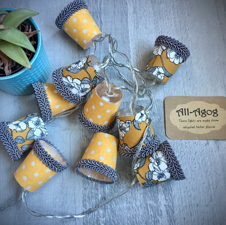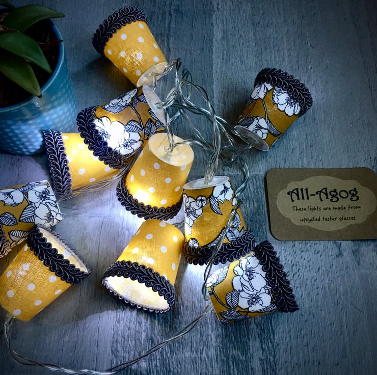 These mini lampshades have been upcycled from used plastic taster glasses.