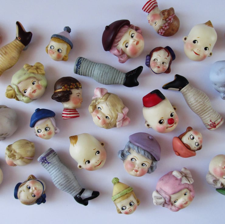 Dottie Dollie Pin Brooch - Rose with a Green Beret is a handmade replica of a real broken antique doll head from my collection, the original head was broken, dirty and unloved, having been discarded and buried as rubbish almost a hundred years ago.