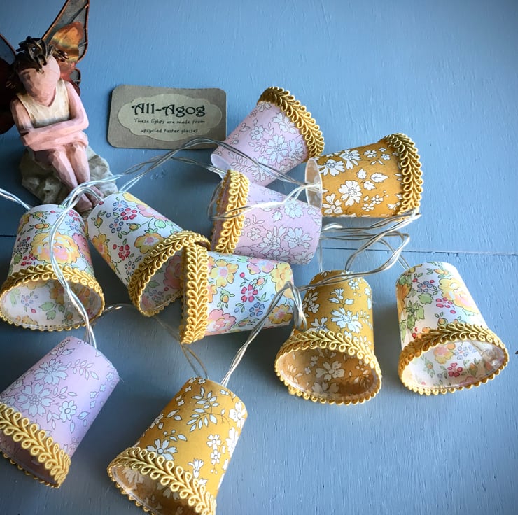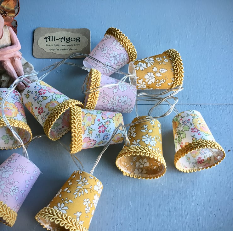 These mini lampshades have been upcycled from used plastic taster glasses.