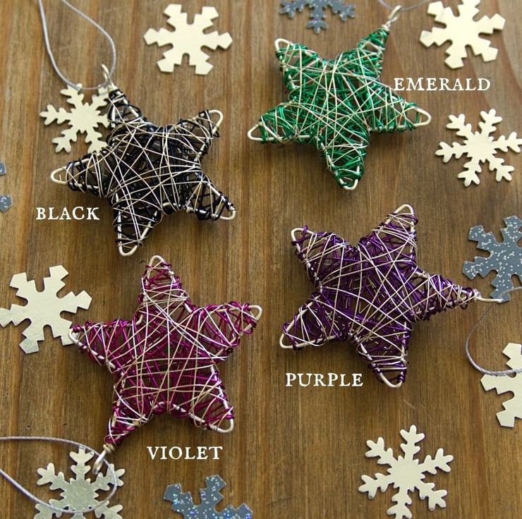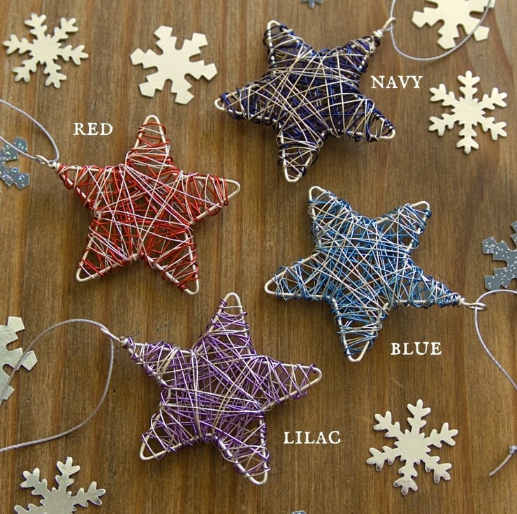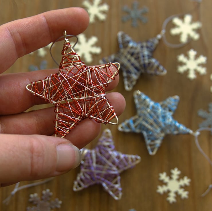 These cute little stars are available in a choice of colours to match your Christmas colour scheme. The shiny metallic wire is beautiful & bright but a bit tricky to photograph - please review both the light & dark photos. If you'd like me to put your chosen colours together & send a photo before ordering then just drop me a message.