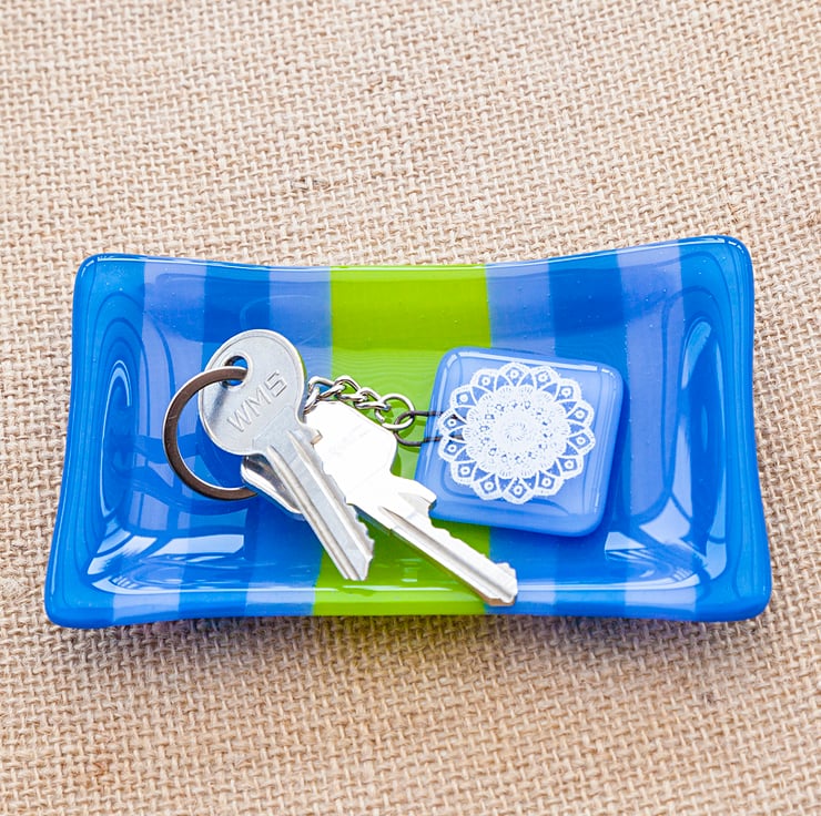 All items are handmade by myself in my home workshop, the glass is layered and then fired in a kiln in order to fuse the layers together. Because each item is handmade they will all be slightly different.