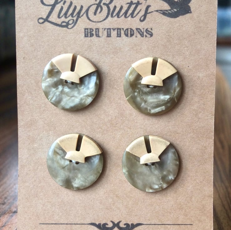 These are gorgeous, not sure why I am listing them! 4 Vintage Art Deco fawn and marbled brown/pearly dare I say rising sun buttons, stunning!