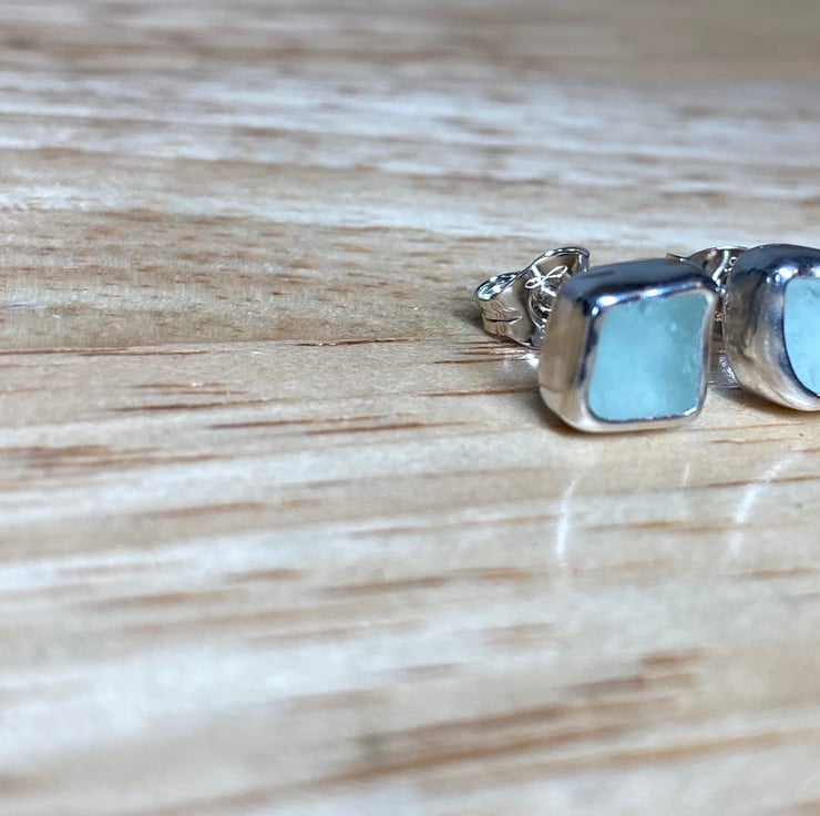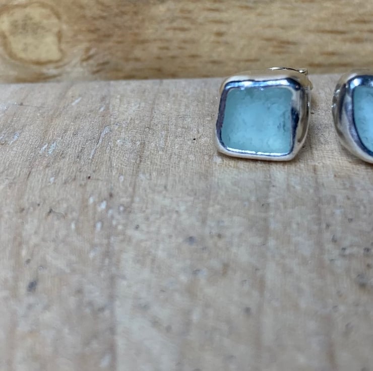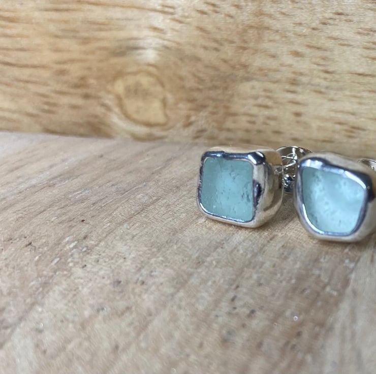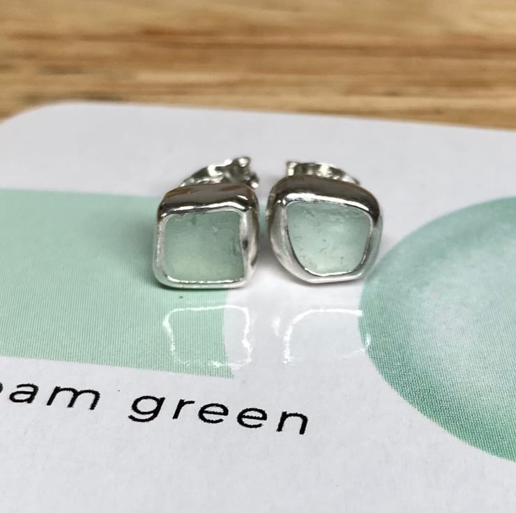 Beautifully unique ‘Seafoam green’ coloured sea glass and silver stud earrings