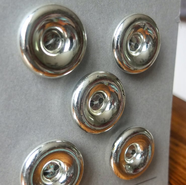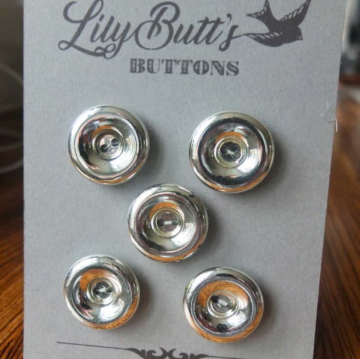 5 chunky vintage silver coloured buttons, 27mm