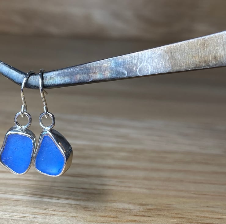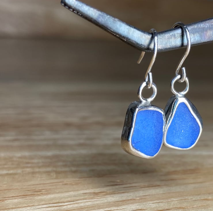 Absolutely stunning light cornflower blue sea glass and silver dangle earrings, it was difficult to capture the true colour of these in the photographs! Cornflower blue is a light purple/blue very striking and rare!
