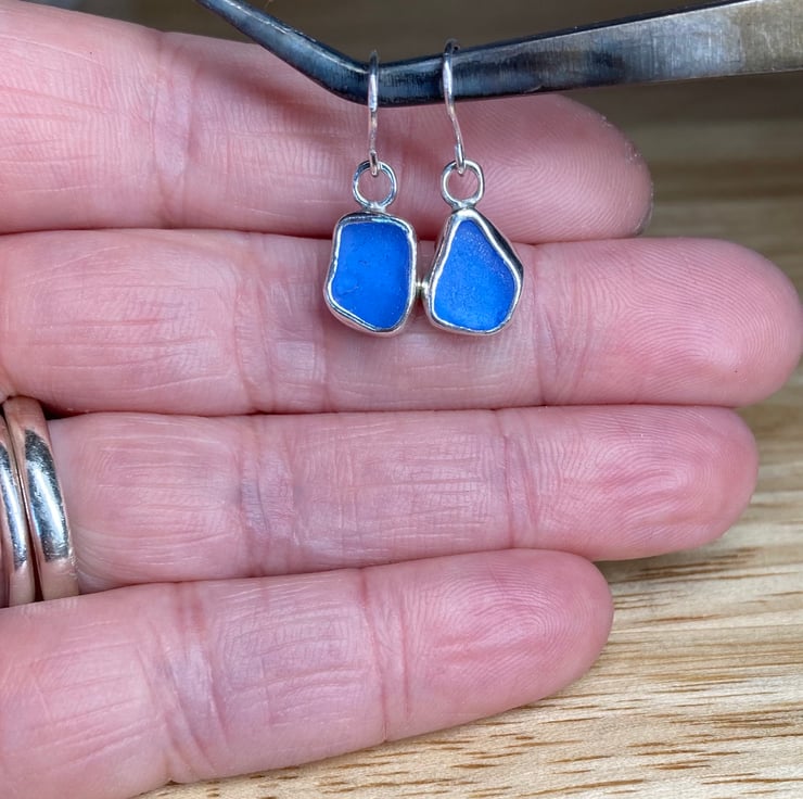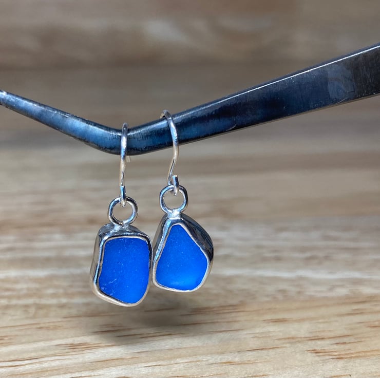 These beautiful pieces of rare sea glass were collected on separate occasions from a beach in North Wales, when I had 2 similar colours they were then handset in fine and sterling silver to make this pair of earrings