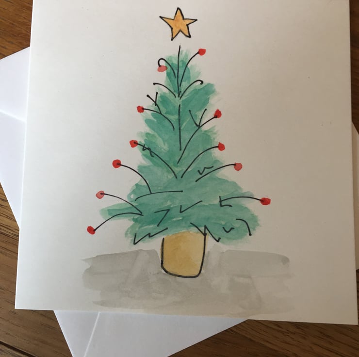 Hand Painted Christmas Card - Christmas Tree Card - Christmas Tree