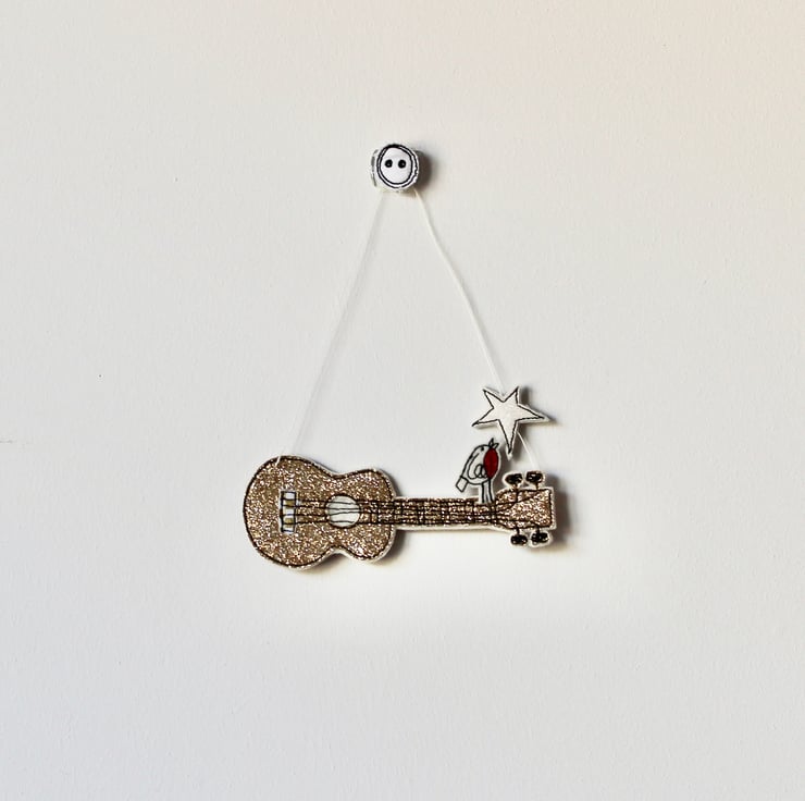 I envisage the little robin sitting on this guitar, to be singing along to a Christmassy tune!