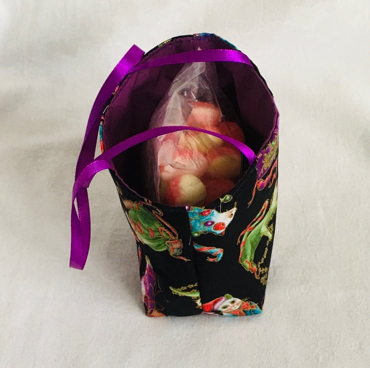 Why not present your special Christmas gift in a fun reusable fabric bag, that can be used again and again. A gift inside a stunning bag, that can be reused, 2 gifts in one. Why not use the bag to fill with lots of goodies and treats, or a selection of scented candles and wax melts. A lovely bag for all kinds of uses.